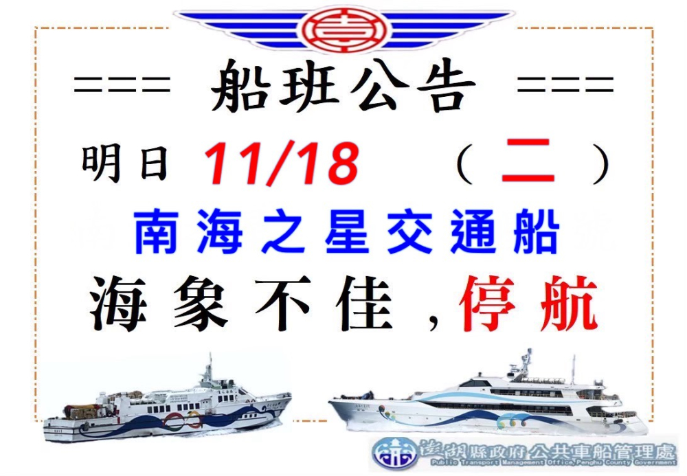 = 11/18船班公告 =